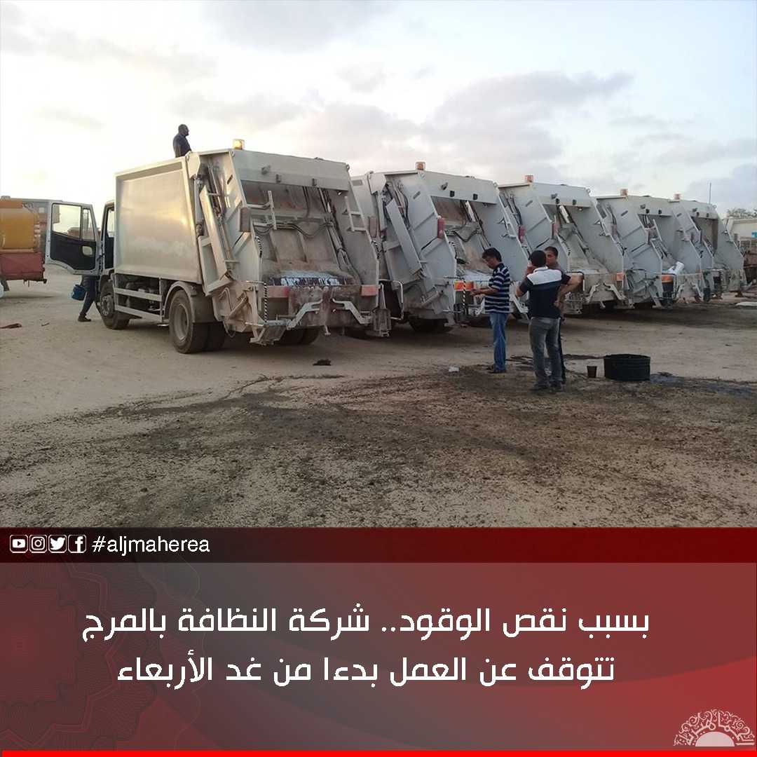 سبب نقص وقود الديزل، تتوقف الشركة العامة لخدمات النظافة بالمرج عن تقديم جميع خدماتها اعتبارا من يوم غد الأربعاء.