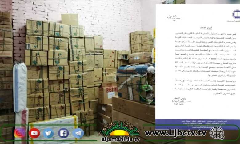 أعلن رئيس اتحاد الناشرين المصريين سعيد عبده، اليوم الأربعاء، تمكن الاتحاد بالتعاون مع الإدارة العامة لمباحث المصنفات الفنية في ضبط 8 الاف كتاب مزور فى 130 طردا بإحدى شركات الشحن لخارج الجمهورية ومجهزة للشحن إلى ليبيا.