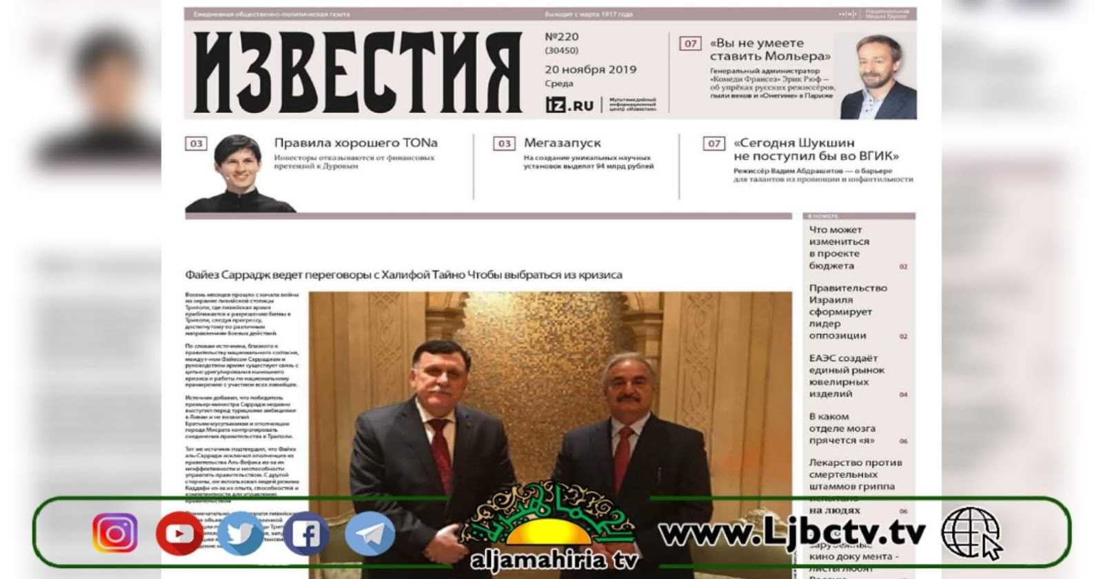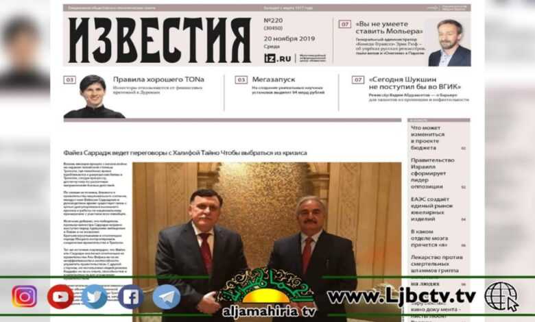 صحيفة ازفستيا ، فايز السراج يتفاوض مع خليفة حفتر سراً للخروج من الازمة