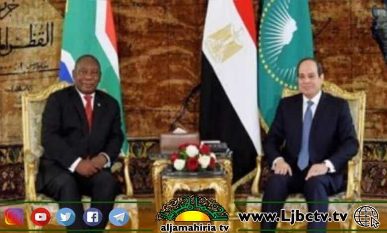 السيسى ، خلال لقائه الرئيس الجنوب أفريقيى “سيريل رامافوزا” مصر حريصة على دعم جهود الأمن والإستقرار فى الشقيقية ليبيا