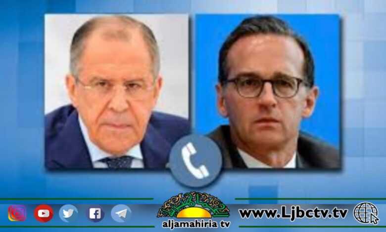 جاء ذلك خلال اتصال هاتفي بين لافروف ونظيره الألماني، هايكو ماس، بحثا خلاله مشروعات قرارات متعلقة بتسوية النزاع المسلح في ليبيا، حسب بيان للخارجية الروسية أوردته وكالة «سبوتنيك».
