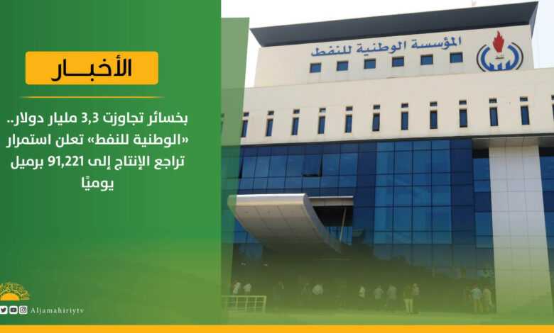 عاجل | بخسائر تجاوزت 3.3 مليار دولار.. مؤسسة النفط” تعلن استمرار تراجع الإنتاج إلى 91,221 برميل يوميًا #ليبيا #قناة_الجماهيرية_العظمى