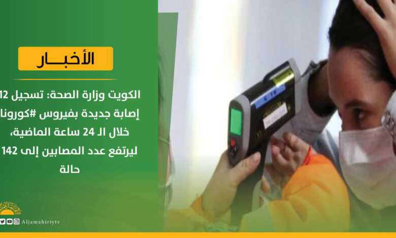 #عاجل | الكويت وزارة الصحة: تسجيل 12 إصابة جديدة بفيروس #كورونا خلال الـ 24 ساعة الماضية، ليرتفع عدد المصابين إلى 142 حالة .