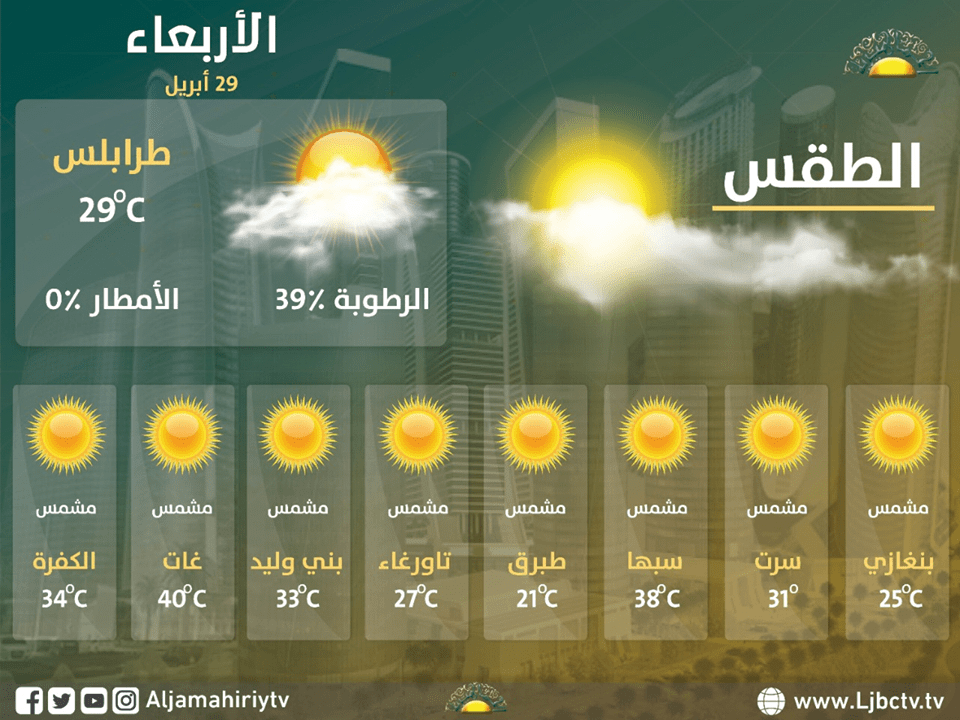 الحالة الجوية السائدة والمتوقعة الصادرة اليوم الاربعاء الموافق 2020/04/29 م #قناة_الجماهيرية_العظمى_قناة_كل_الجماهير