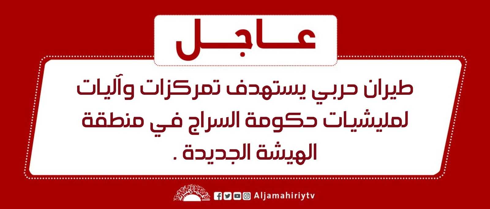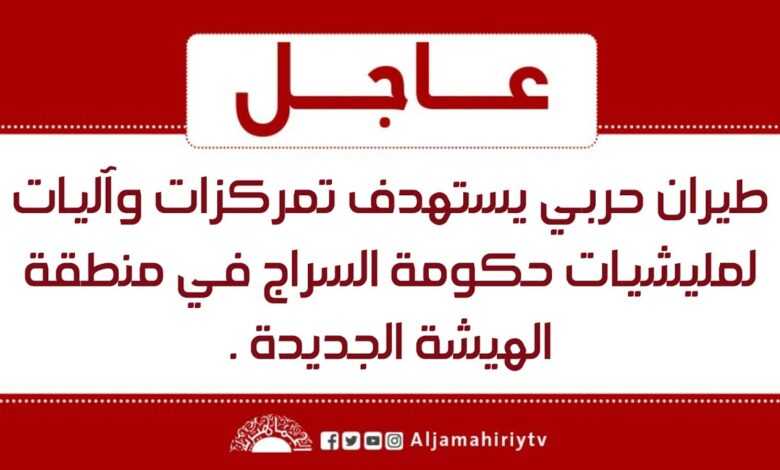 طيران حربي يستهدف تمركزات وآليات لمليشيات حكومة السراج في منطقة الهيشة الجديدة .