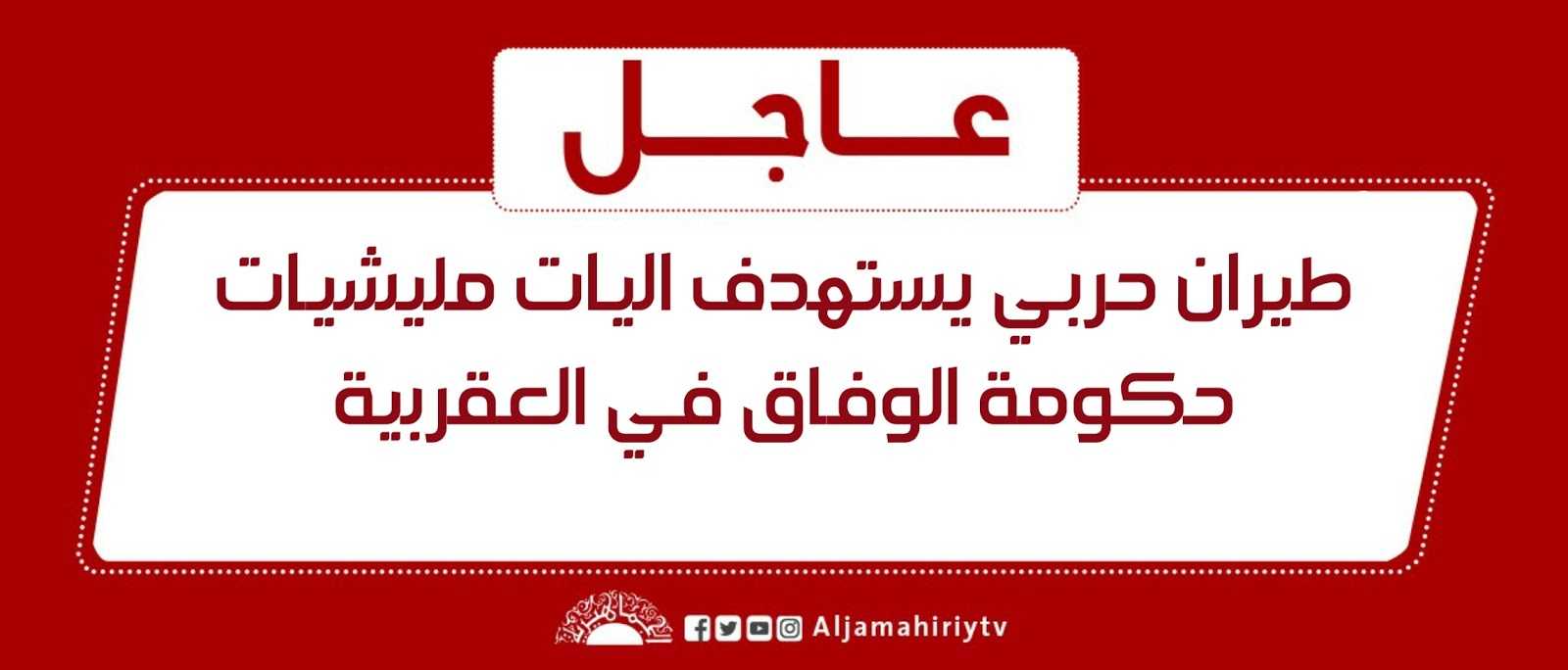 طيران حربي يستهدف اليات مليشيات حكومة الوفاق في العقربية .