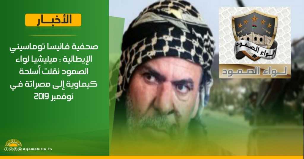 كشفت الصحفية الإيطالية “فانيسا توماسيني” أن ميليشيا لواء الصمود، التابعة لـ صلاح بادي المعاقب دولياً من قبل مجلس الأمن قامت بنقل أسلحة كيماوية إلى مصراتة في نوفمبر 2019.
