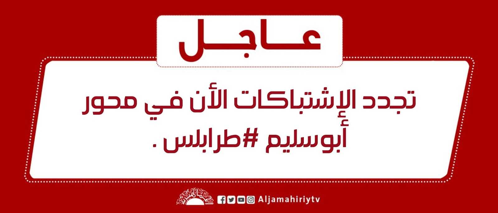 عاجل | تجدد الإشتباكات الأن في محور أبوسليم #طرابلس . #قناة_الجماهيرية_العظمى_قناة_كل_الجماهير