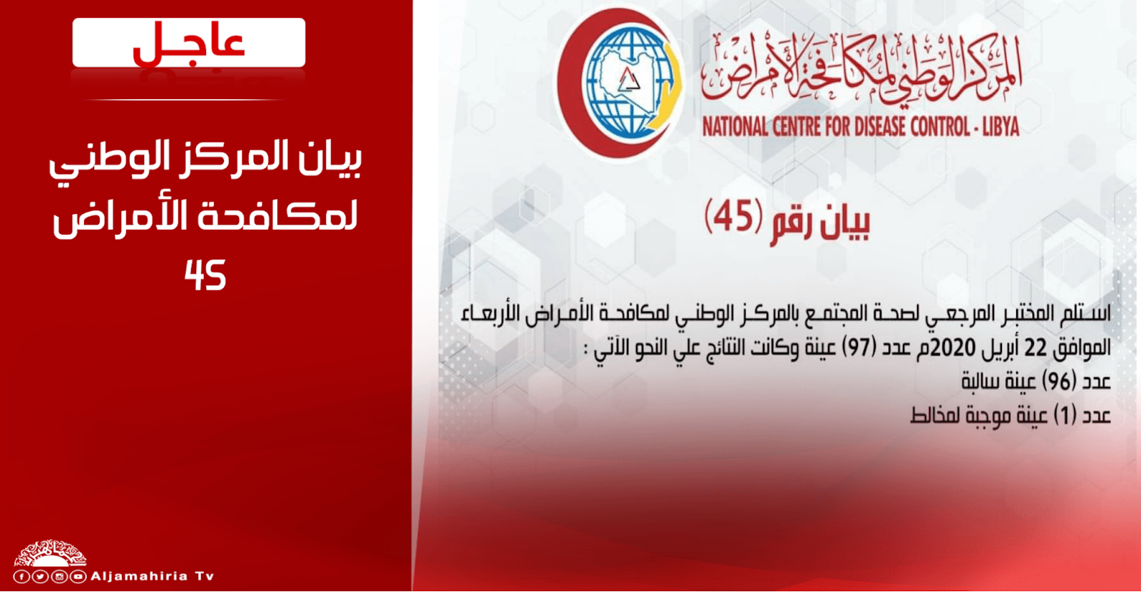 عاجل | بيان المركز الوطني لمكافحة الأمراض 45 #قناة_الجماهيرية_العظمى_قناة_كل_الجماهير