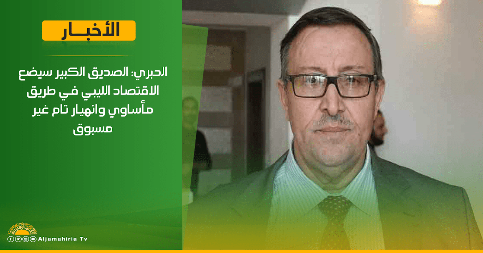 الحبري: الصديق الكبير سيضع الاقتصاد الليبي في طريق مأساوي وانهيار تام غير مسبوق #قناة_الجماهيرية_العظمى_قناة_كل_الجماهير