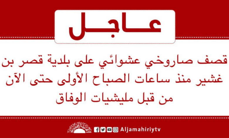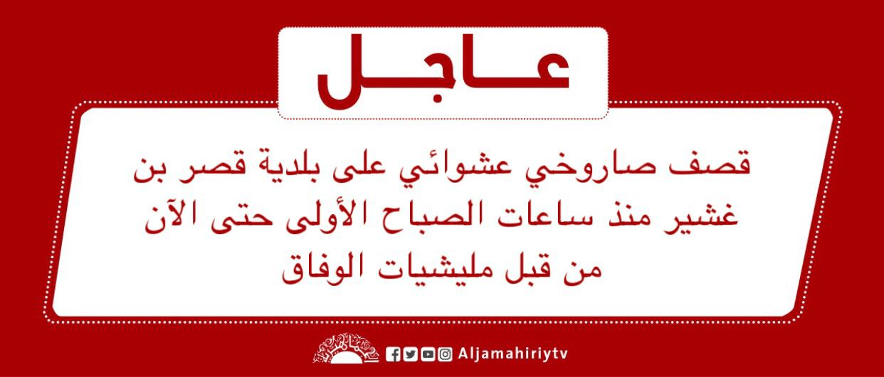 عاجل // قصف صاروخي عشوائي على بلدية قصر بن غشير منذ ساعات الصباح الأولى حتى الآن من قبل مليشيات الوفاق #قناة_الجماهيرية_العظمى_قناة_كل_الجماهير