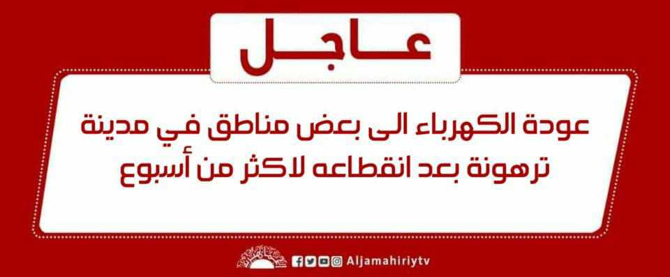 عاجل | عودة الكهرباء الى بعض المناطق في مدينة ترهونة بعد انقطاعه لاكثر من أسبوع #قناة_الجماهيرية_العظمى_قناة_كل_الجماهير
