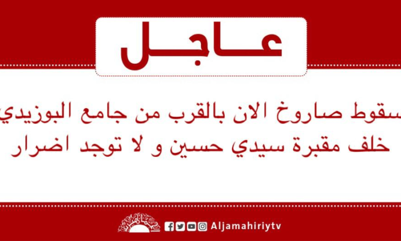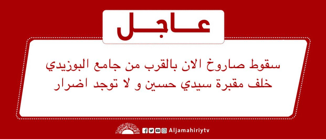 عاجل // سقوط صاروخ الان بالقرب من جامع البوزيدي خلف مقبرة سيدي حسين و لا توجد اضرار #قناة_الجماهيرية_العظمي_قناة_كل_الجماهير