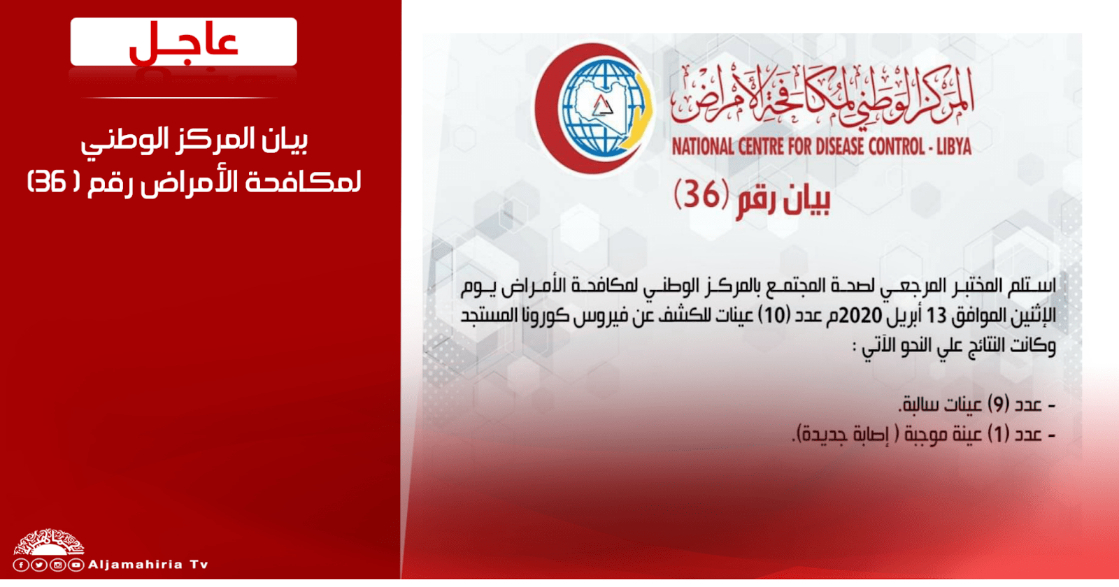 عاجل | بيان المركز الوطني لمكافحة الأمراض رقم ( 36) #قناة_الجماهيرية_العظمي_قناة_كل_الجماهير