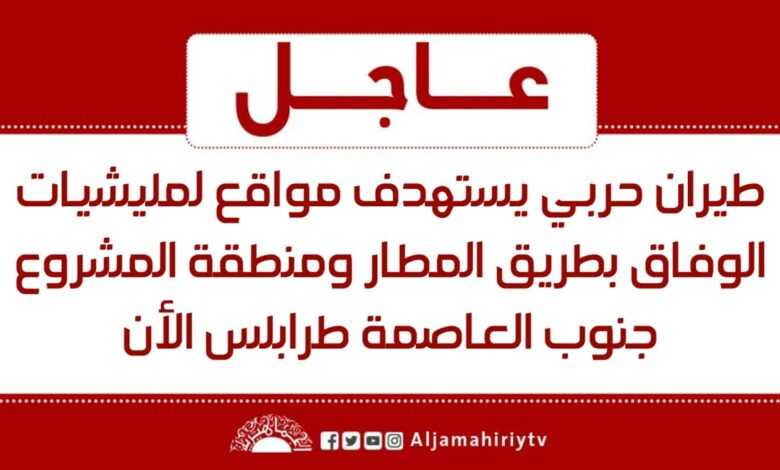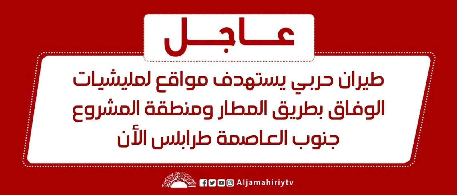 طيران حربي يستهدف مواقع لمليشيات الوفاق بطريق المطار ومنطقة المشروع جنوب العاصمة طرابلس الأن .
