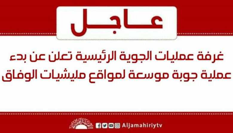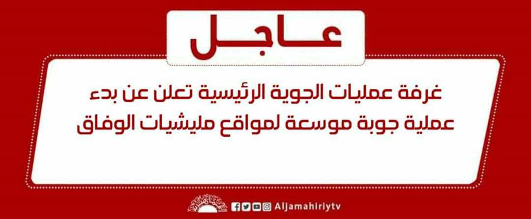 عاجل | غرفة العمليات الجوية الرئيسية تعلن عن بدء عملية جوبة موسعة لمواقع مليشيات الوفاق #قناة_الجماهيرية_العظمى_قناة_كل_الجماهير
