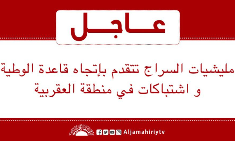 عاجل // مليشيات السراج تتقدم بإتجاه قاعدة الوطية و اشتباكات في منطقة العقربية #قناة_الجماهيرية_العظمي_قناة_كل_الجماهير