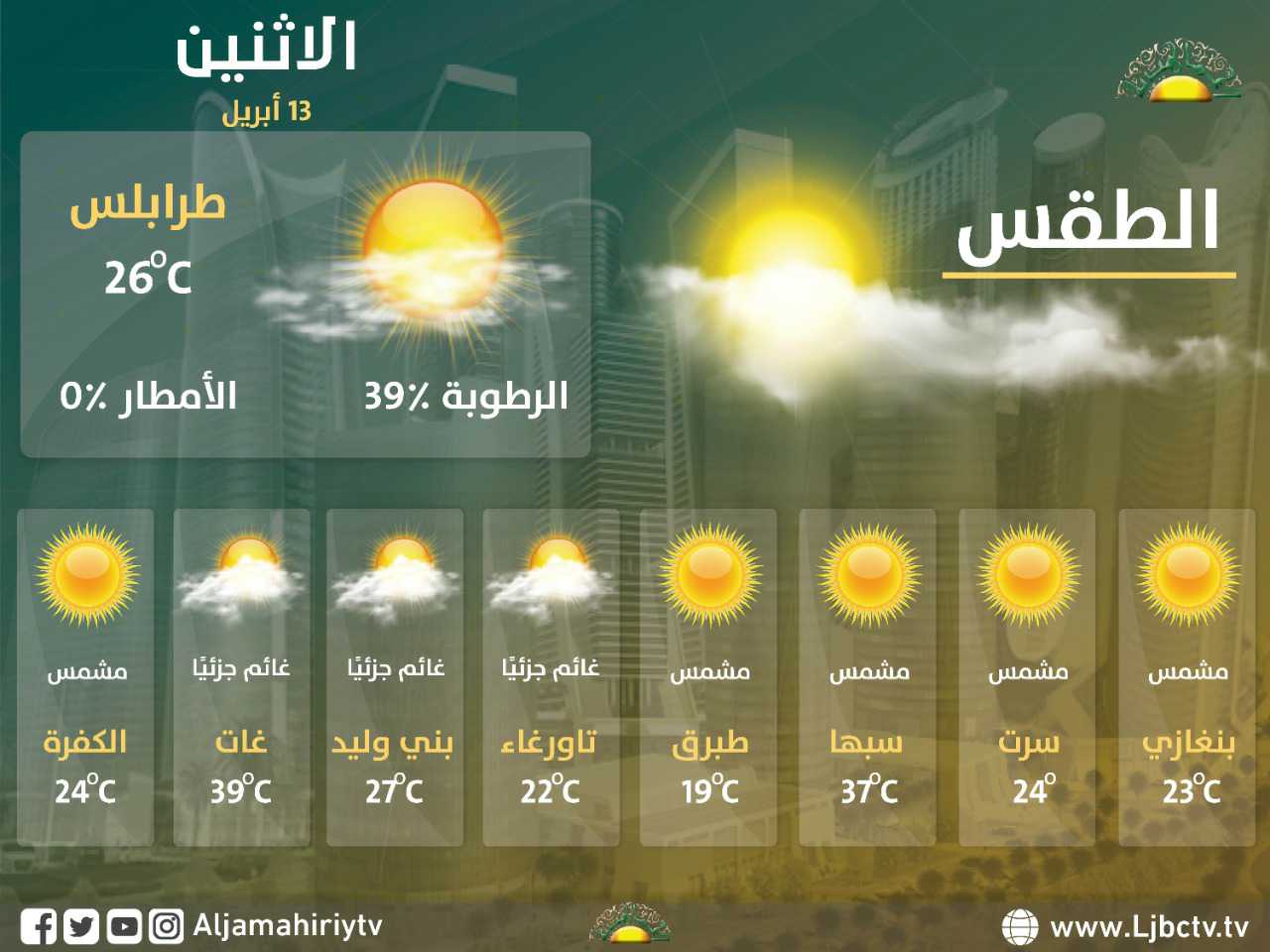 الحالة الجوية السائدة والمتوقعة الصادرة اليوم الاثنين الموافق 2020/04/13 ف #قناة_الجماهيرية_العظمي_قناة_كل_الجماهير