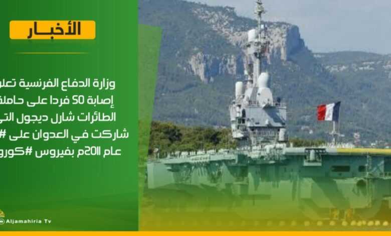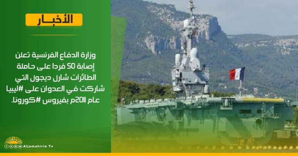 وزارة الدفاع الفرنسية تعلن إصابة 50 فردا على حاملة الطائرات شارل ديجول التي شاركت في العدوان على #ليبيا عام 2011م بفيروس #كورونا.