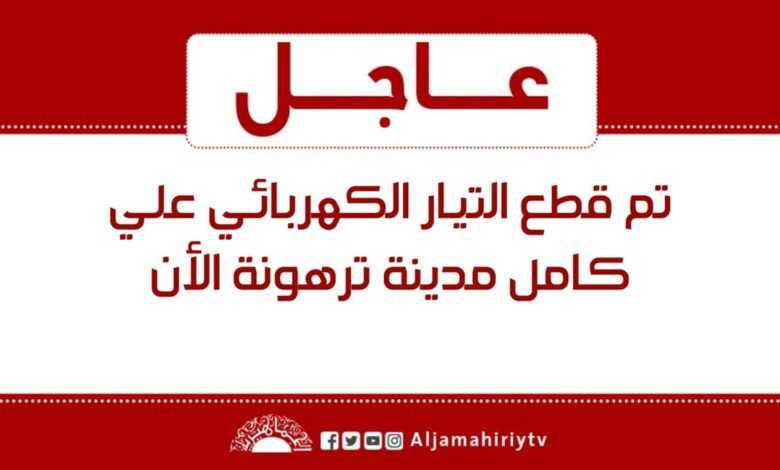 تم قطع التيار الكهربائي علي كامل مدينة ترهونة الأن