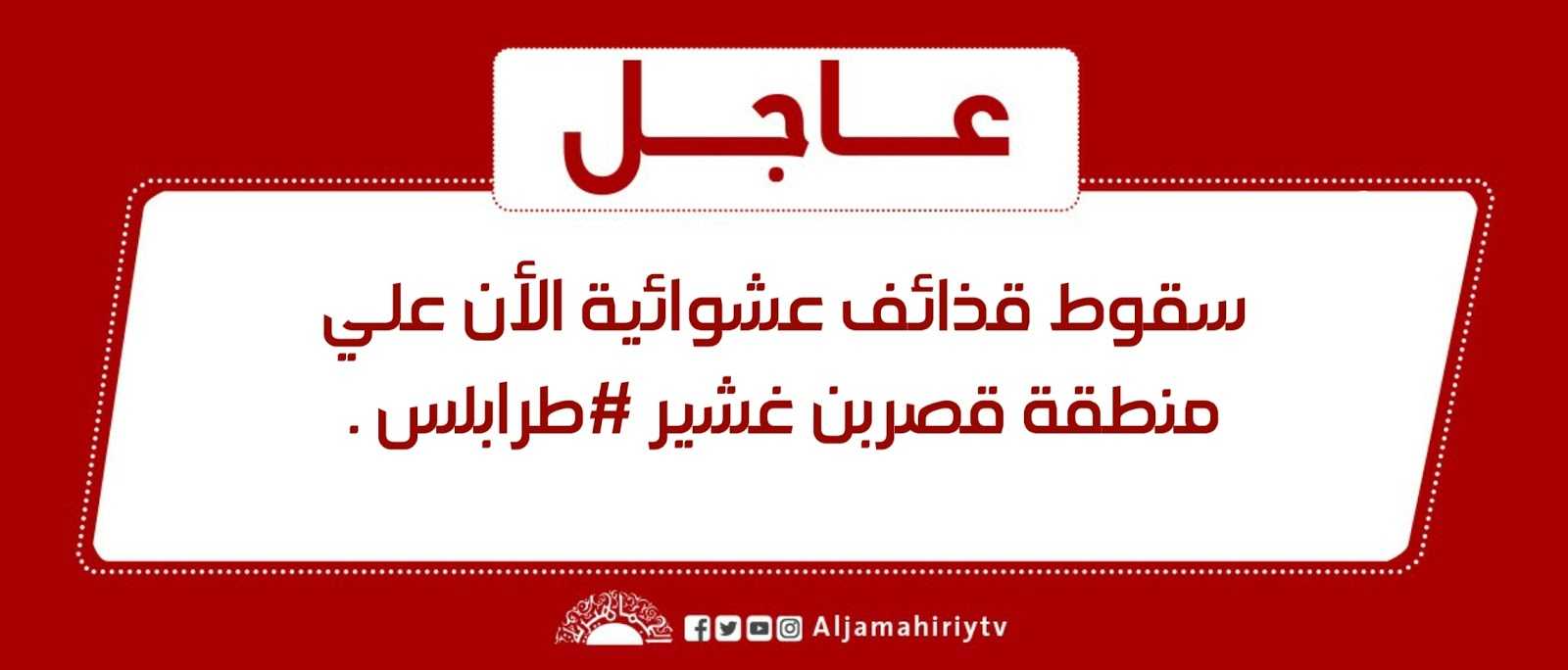 عاجل … سقوط قذائف عشوائية الأن علي منطقة قصربن غشير #طرابلس .