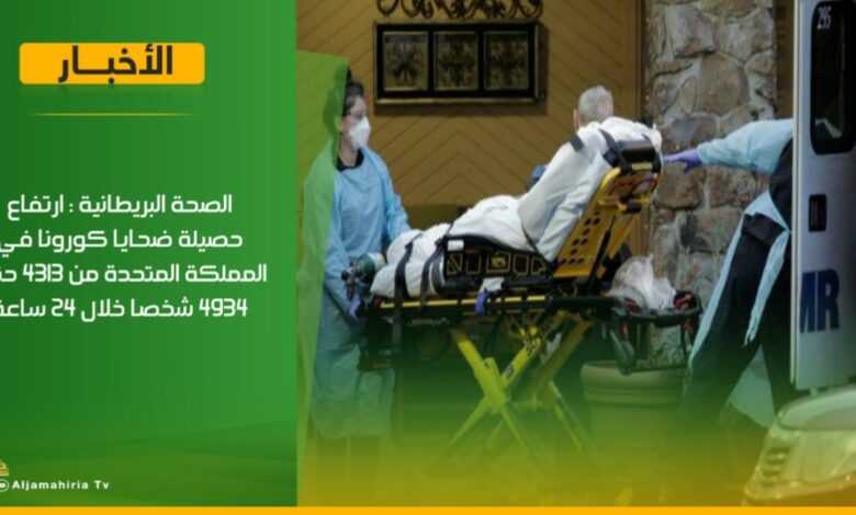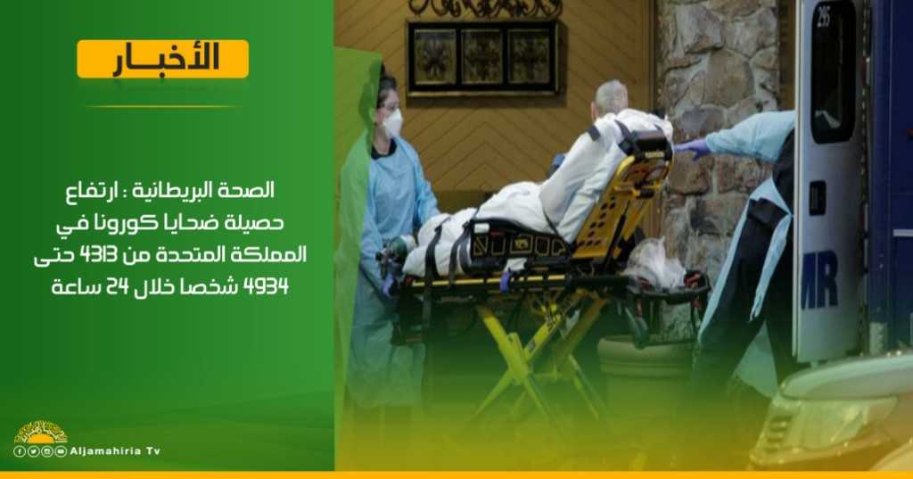 عاجل | الصحة البريطانية: ارتفاع حصيلة ضحايا كورونا في المملكة المتحدة من 4313 حتى 4934 شخصا خلال 24 ساعة #قناة_الجماهيرية_العظمي_قناة_كل_الجماهير