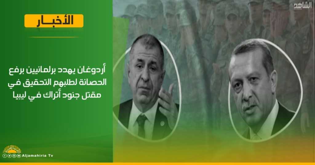 عاجل | أردوغان يهدد برلمانيين برفع الحصانة لطلبهم التحقيق في مقتل جنود أتراك في ليبيا .#قناة_الجماهيرية_العظمي_قناة_كل_الجماهير