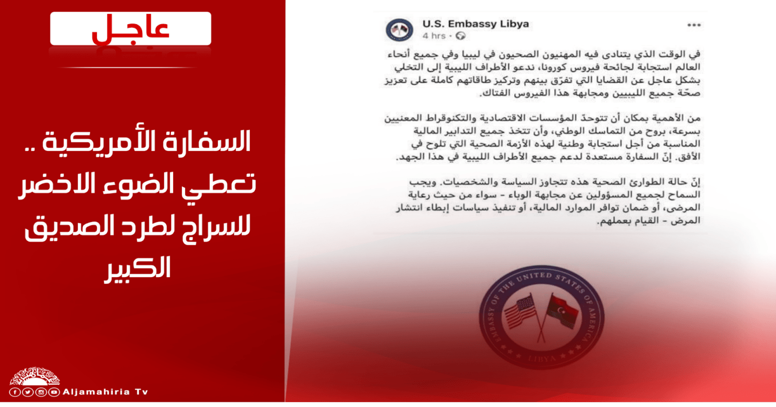 عاجل | عاجل … السفارة الأمريكية تعطي الضوء الاخضر للسراج لطرد الصديق الكبير .#قناة_الجماهيرية_العظمي_قناة_كل_الجماهير