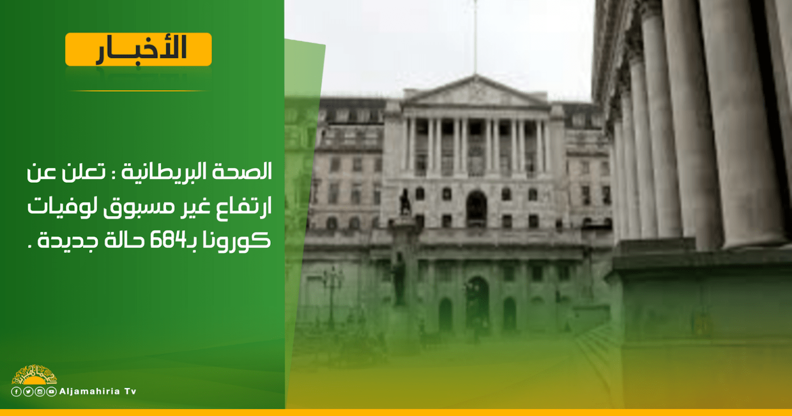 عاجل // الصحة البريطانية تعلن عن ارتفاع غير مسبوق لوفيات كورونا بـ684 حالة جديدة . #قناة_الجماهيرية_العظمي_قناة_كل_الجماهير