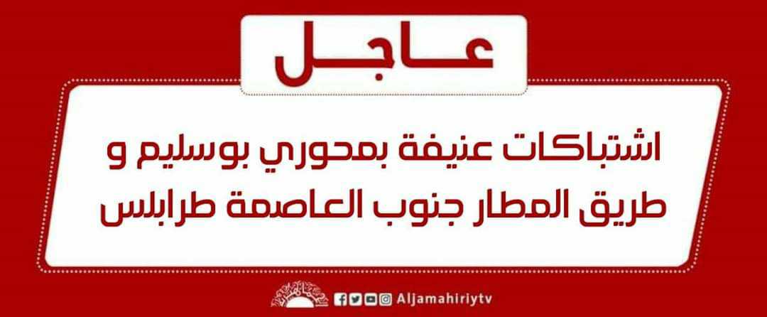 عاجل | أشتباكات عنيفة بمحوري بوسليم و طريق المطار جنوب العاصمة طرابلس .#قناة_الجماهيرية_العظمي_قناة_كل_الجماهير