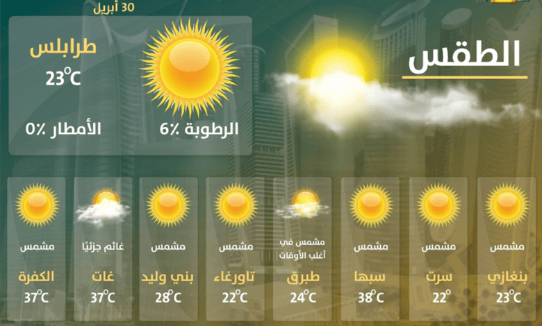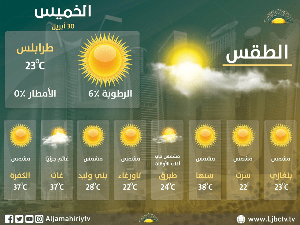 الاحوال الجوية السائدة و المتوقعة ليوم 30 ابريل ( الطير ) 2020 م لمدينة طرابلس #قناة_الجماهيرية_العظمى_قناة_كل_الجماهير