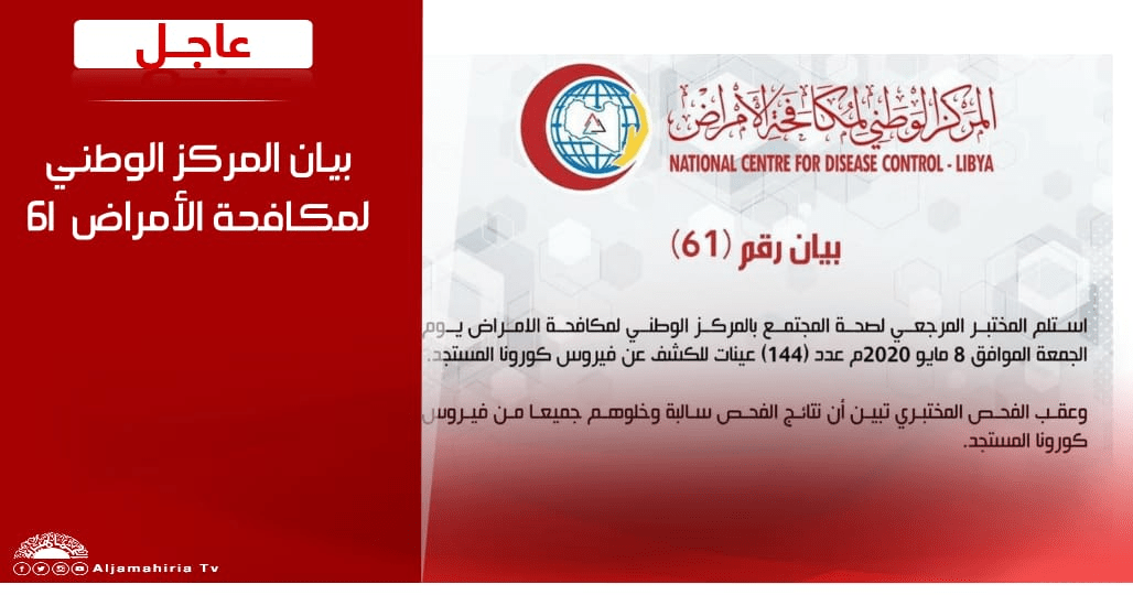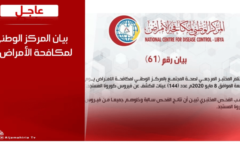 عاجل // بيان المركز الوطني لمكافحة الأمراض (61 ) 8 مايو 2020م ‫#‏قناة_الجماهيرية_العظمى_قناة_كل_الجماهير‬