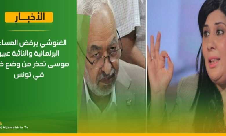 واعتبرت موسي، أن رفض رئيس المؤسسة التشريعية راشد الغنوشي المساءلة، دليل على أن له مآرب شخصية من تحركاته الغامضة مع أطراف أجنبية.