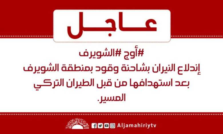 إندلاع النيران بشاحنة وقود بمنطقة الشويرف بعد استهدافها من قبل الطيران التركي المسير