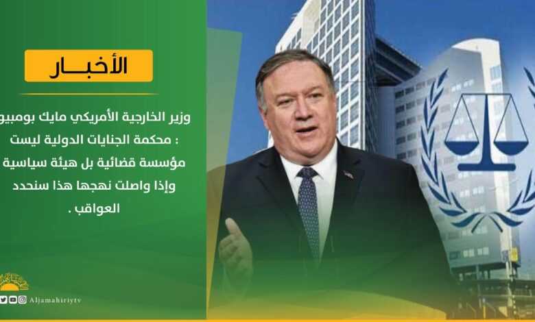 عاجل | وزير الخارجية الأمريكي مايك بومبيو : محكمة الجنايات الدولية ليست مؤسسة قضائية بل هيئة سياسية وإذا واصلت نهجها هذا سنحدد العواقب .