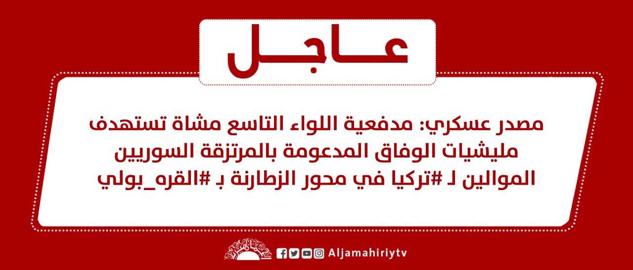مصدر عسكري: مدفعية اللواء التاسع مشاة تستهدف مليشيات الوفاق المدعومة بالمرتزقة السوريين الموالين لـ #تركيا في محور الزطارنة بـ #القره_بولي