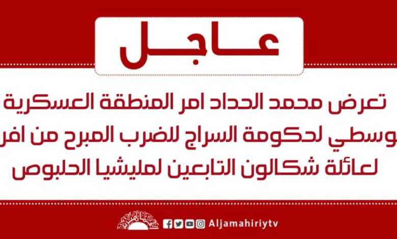 تعرض محمد الحداد امر المنطقة العسكرية الوسطي لحكومة السراج للضرب المبرح من افراد لعائلة شكالون التابعين لمليشيا الحلبوص