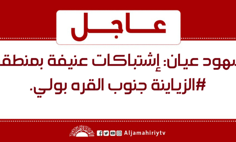 عاجل // شهود عيان: إشتباكات عنيفة بمنطقة #الزياينة جنوب القره بولي ‫#‏قناة_الجماهيرية_العظمى_قناة_كل_الجماهير‬