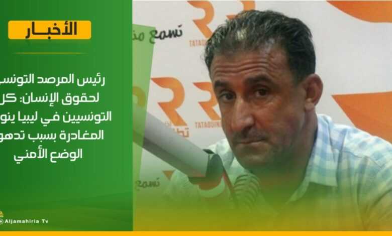 رئيس المرصد التونسي لحقوق الإنسان: كل التونسيين في ليبيا ينوون المغادرة بسبب تدهور الوضع الأمني #قناة_الجماهيرية_العظمى_قناة_كل_الجماهير