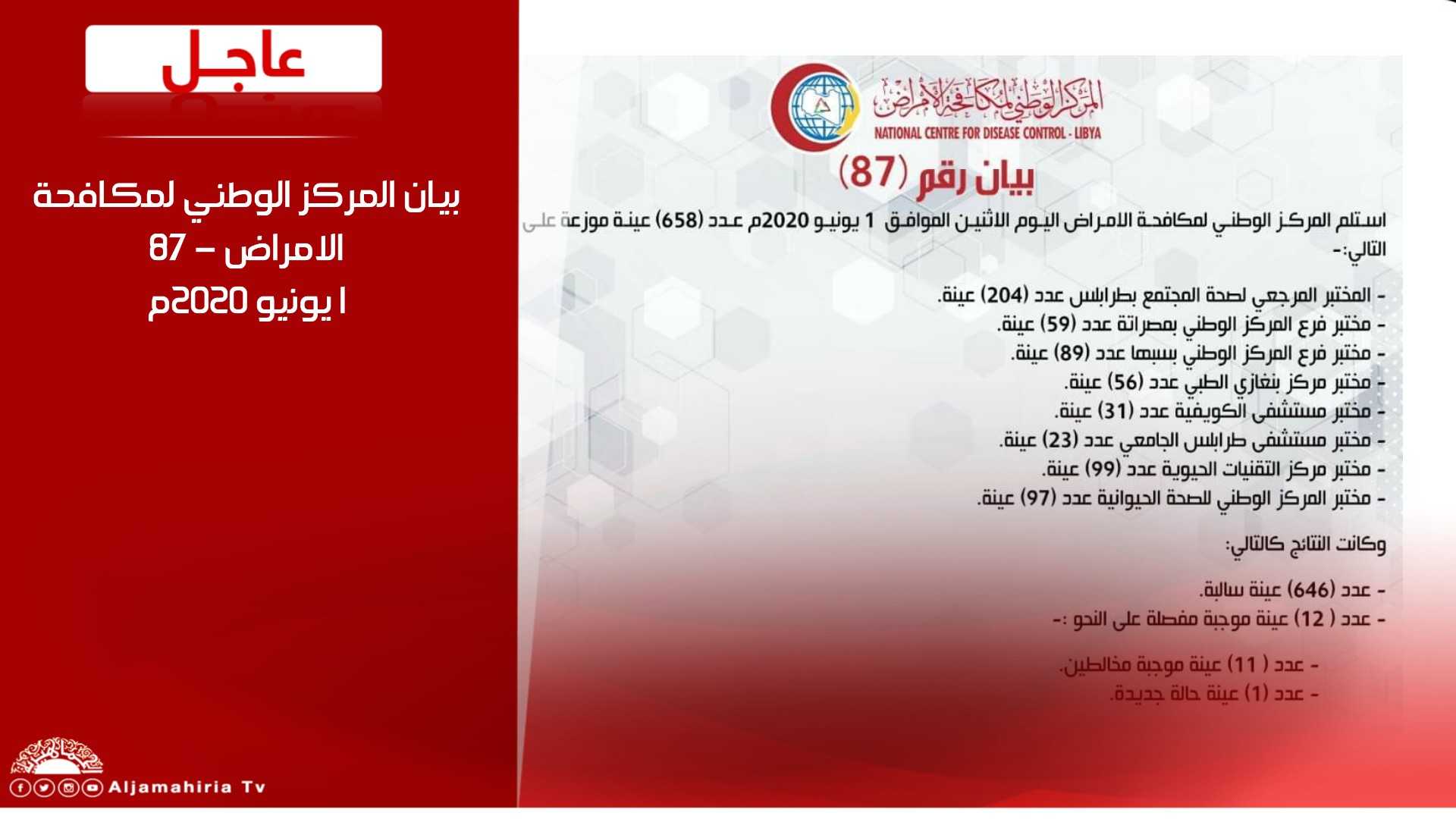 بيان المركز الوطني لمكافحة الامراض – 87 1 يونيو 2020م #قناة_الجماهيرية_العظمى_قناة_كل_الجماهير