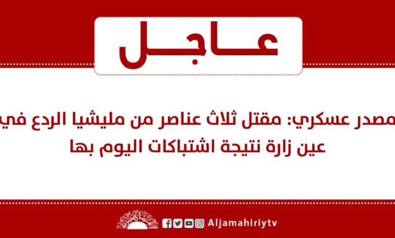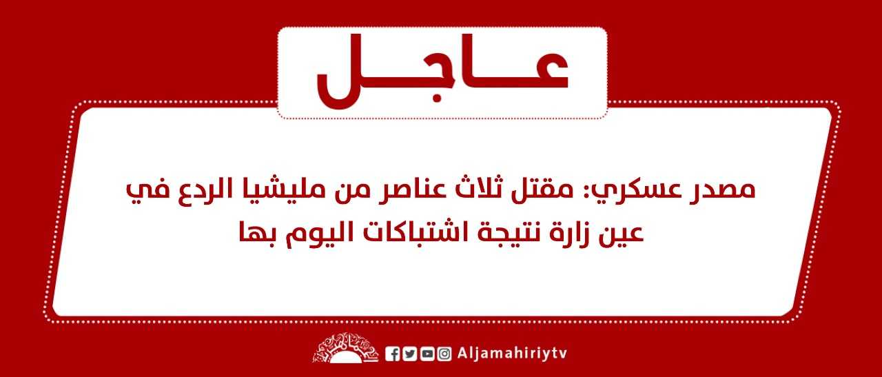 عاجل // مصدر عسكري: مقتل ثلاث عناصر من مليشيا الردع في عين زارة نتيجة اشتباكات اليوم بها #قناة_الجماهيرية_العظمى_قناة_كل_الجماهير