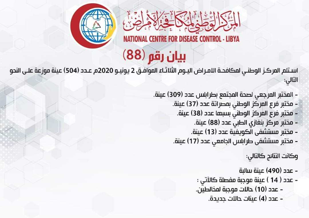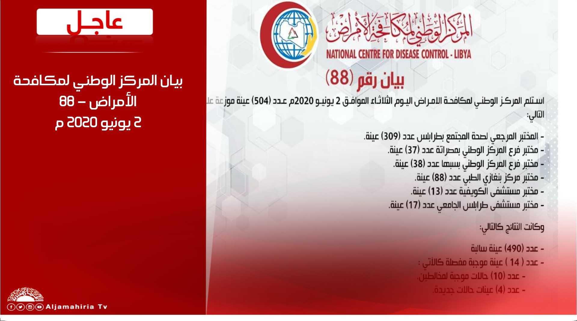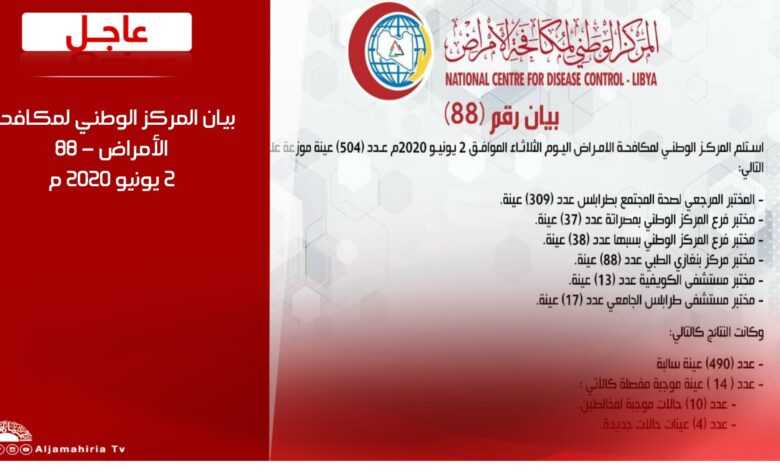 بيان المركز الوطني لمكافحة الأمراض – 88 2 يونيو 2020 م #قناة_الجماهيرية_العظمى_قناة_كل_الجماهير