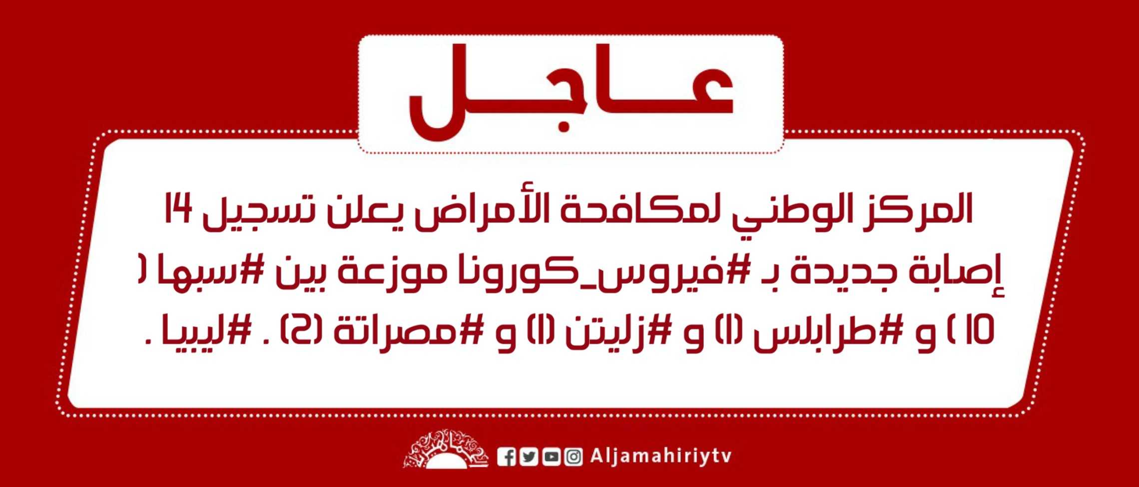 الرئيسية/عاجل/عاجل // المركز الوطني لمكافحة الأمراض يعلن تسجيل 14 إصابة جديدة بـ #فيروس_كورونا موزعة بين #سبها ( 10 ) و #طرابلس (1) و #زليتن (1) و #مصراتة (2) . #ليبيا . #قناة_الجماهيرية_العظمى_قناة_كل_الجماهير عاجل عاجل // المركز الوطني لمكافحة الأمراض يعلن تسجيل 14 إصابة جديدة بـ #فيروس_كورونا موزعة بين #سبها ( 10 ) و #طرابلس (1) و #زليتن (1) و #مصراتة (2) . #ليبيا . #قناة_الجماهيرية_العظمى_قناة_كل_الجماهير 2 يونيو، 2020 2 يونيو، 2020 فيسبوك تويتر بينتيريست واتساب تيلقرام ڤايبر مشاركة عبر البريد طباعة