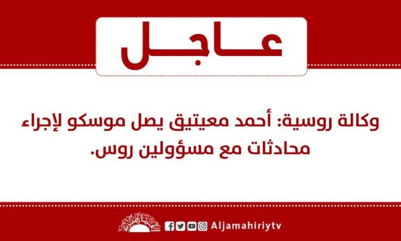 وكالة روسية: أحمد معيتيق يصل موسكو لإجراء محادثات مع مسؤولين روس.