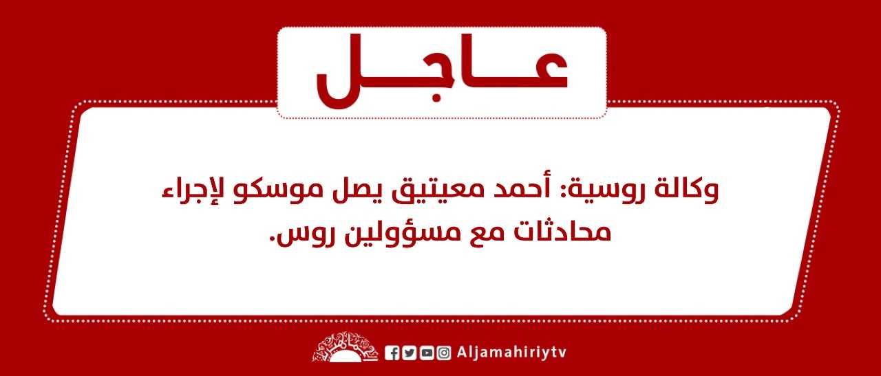 عاجل // وكالة روسية: أحمد معيتيق يصل موسكو لإجراء محادثات مع مسؤولين روس #قناة_الجماهيرية_العظمى_قناة_كل_الجماهير