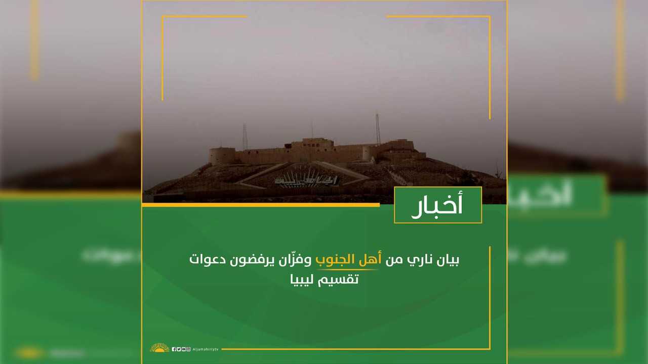 ندعو نحن المواطنيين الليبيين من الجنوب الليبي/فزان الموقعين على هذا البيان كافة الليبيين في كل ربوع ليبيا لرفع اصواتهم عالية لفضح ورفض كل الدعوات العلنية والخفية لتقسيم ليبيا .