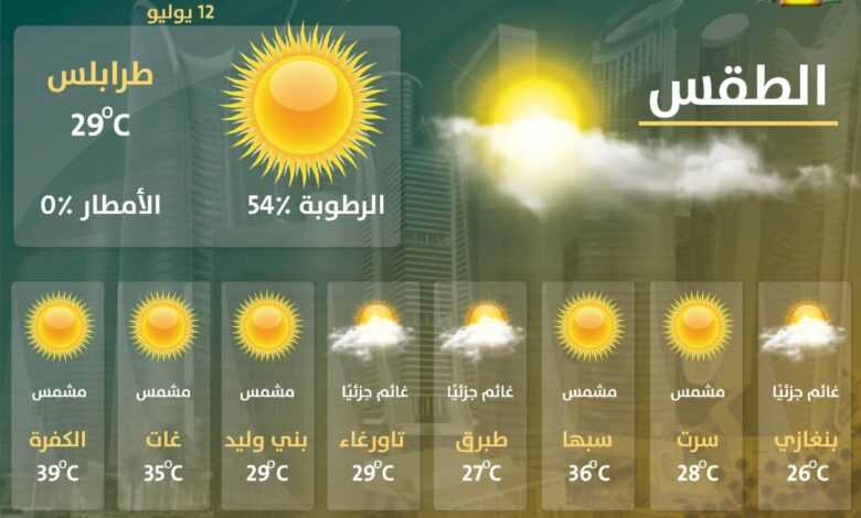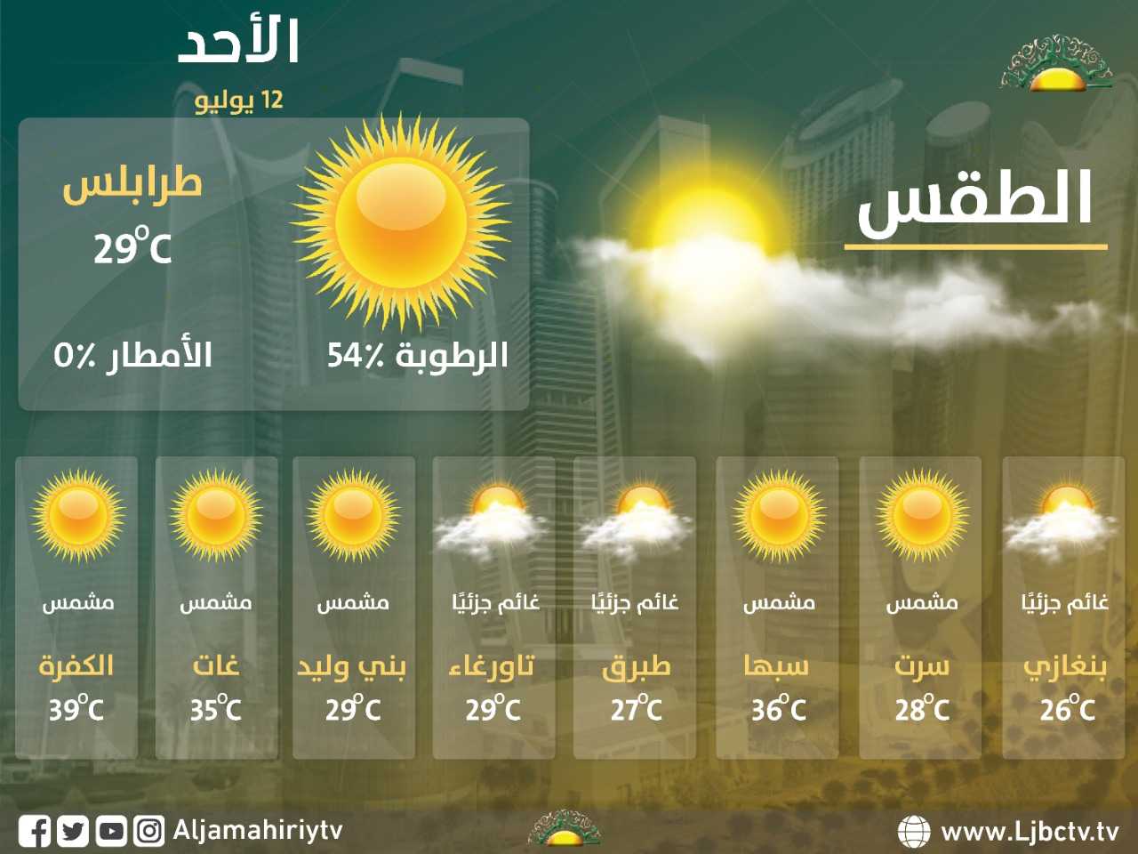 الحالة الجوية السائدة و المتوقعة الصادرة اليوم الاحد الموافق 2020/07/12 م