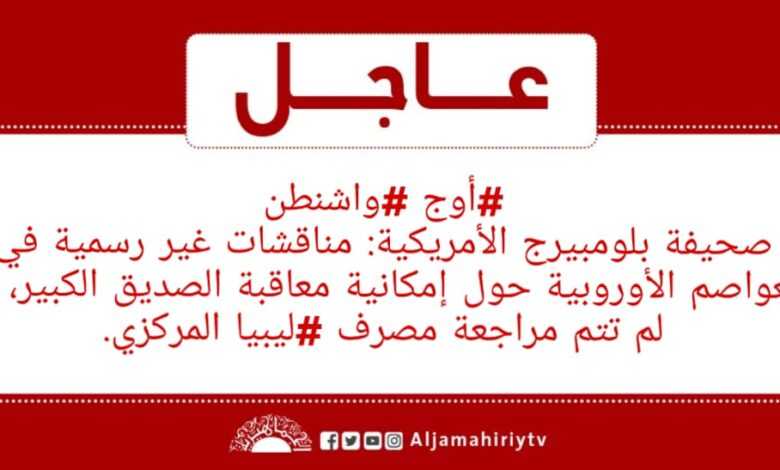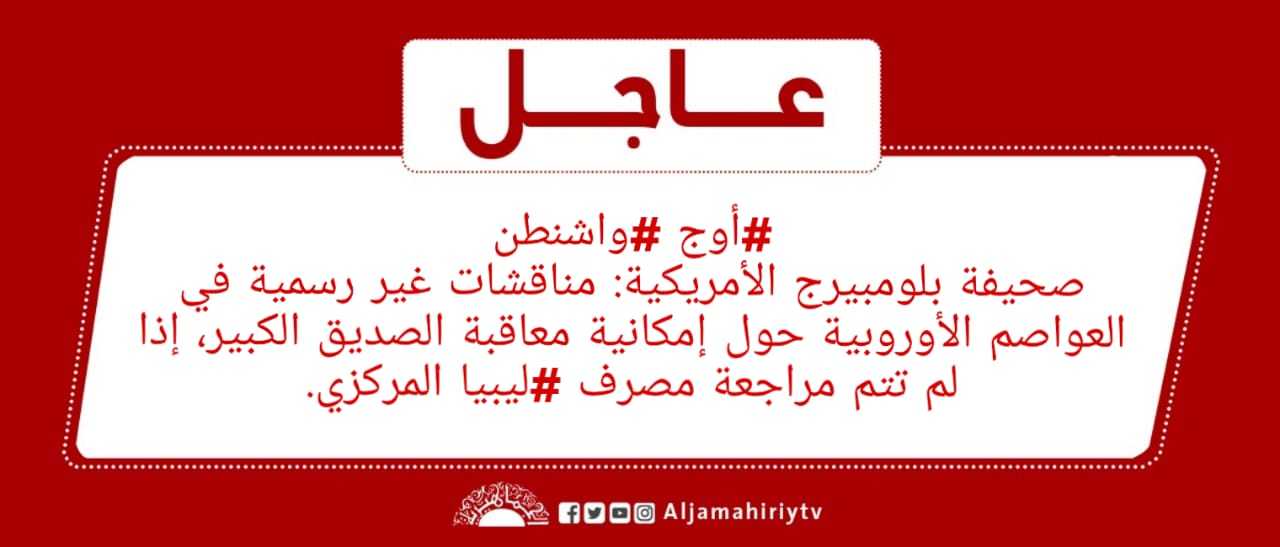 عاجل // #أوج #واشنطن صحيفة بلومبيرج الأمريكية: مناقشات غير رسمية في العواصم الأوروبية حول إمكانية معاقبة الصديق الكبير، إذا لم تتم مراجعة مصرف #ليبيا المركزي