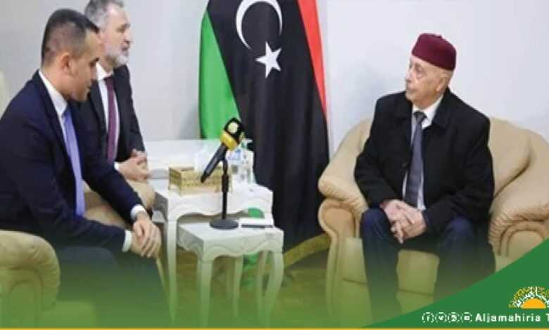 وحسب البيان، تناول اللقاء بين دي مايو، وعقيلة صالح، إمكانية استئناف إنتاج وتصدير النفط، حيث شدد دي مايو، على أن الاستئناف الفوري لاستغلال الموارد الطبيعية الليبية سيكون له أثر إيجابي لن يقتصر على اقتصاد البلاد ورفاهية الليبيين فقط، بل أيضًا على آفاق المفاوضات في المجالين السياسي والأمني.