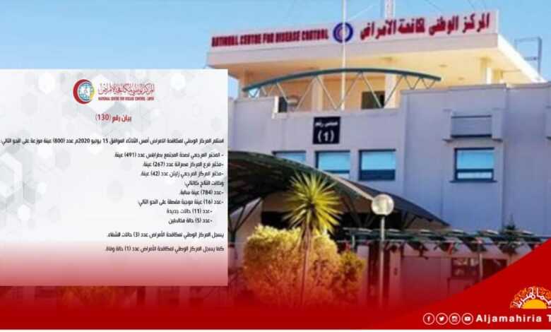 كما يسجل المركز الوطني لمكافحة الأمراض عدد (1) حالة وفاة.